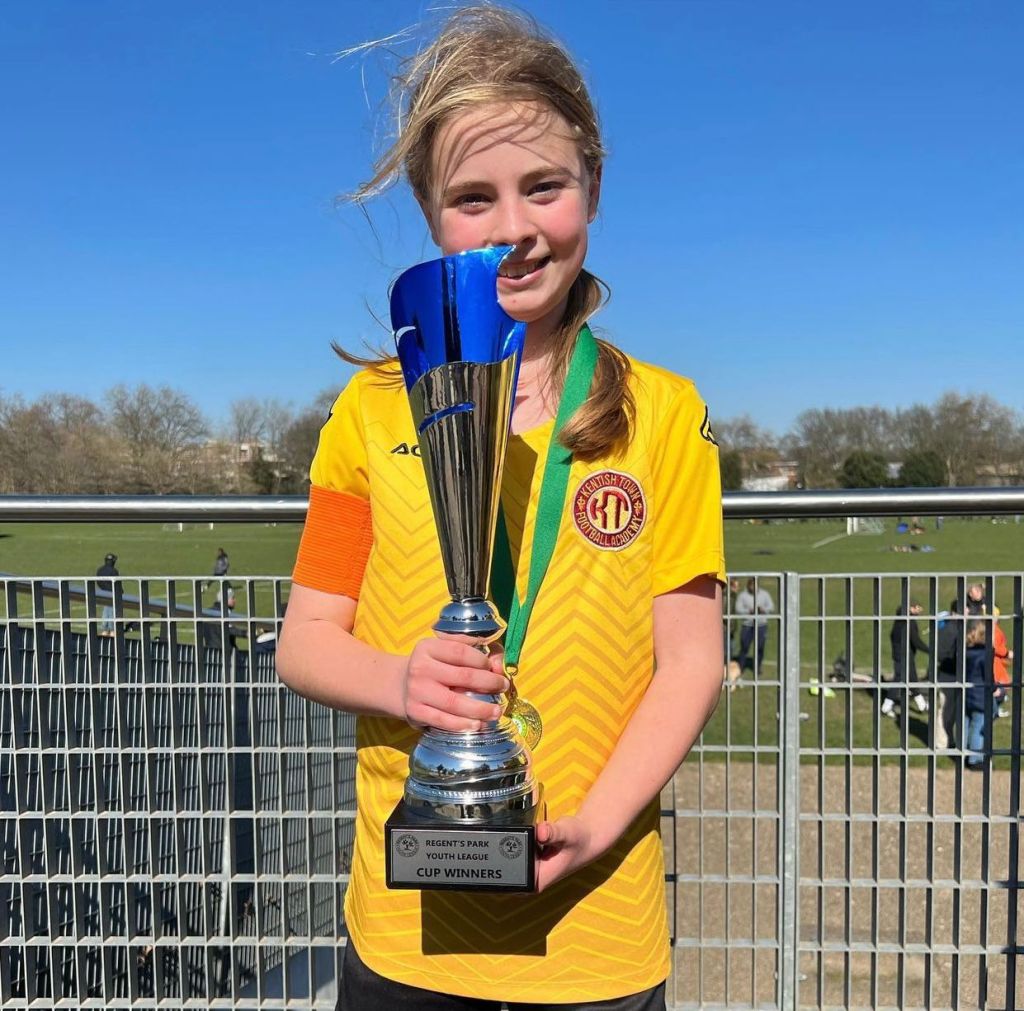 Bagging herself a brace, the Kentish Town FC captain helped her team beat London Soccer Stars (LSS) in the final of the Under-12s 7v7 A Cup. There was also an own goal in the mix as Kentish Town won 3-0.